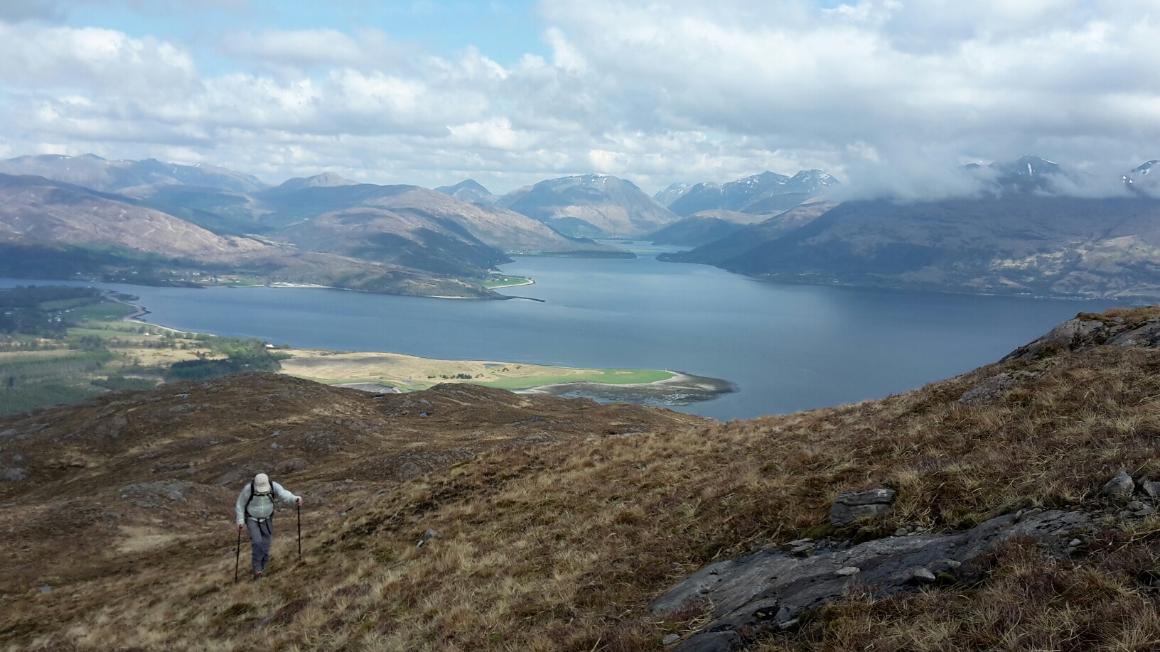 Bertie was manouevred into a comfortable position at the end of Glen Gour and, as breakfast was eaten, there were signs of brightening. Hoping that they would continue with some rapidity, I set off, with Mick accompanying me for a little way.